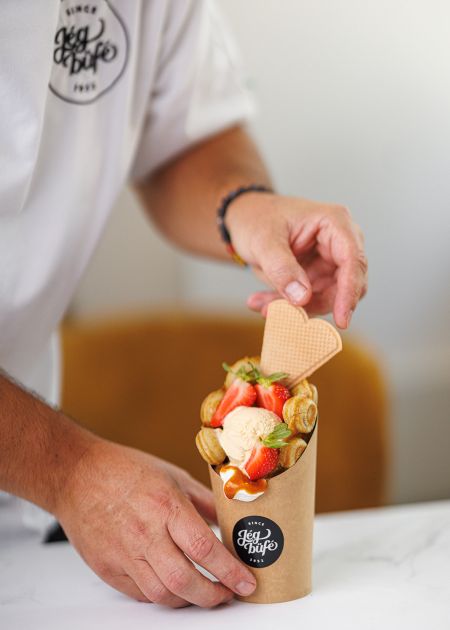 Megújult csapatunk friss szemléletmódot hoz magával, de küldetésünk változatlan: megőrizni és továbbvinni a Jégbüfé évtizedes hagyományait. Az újranyitás számunkra új kezdet, amely tisztelettel épít a régi értékekre, miközben új dimenziókat hoz a cukrászda életébe.